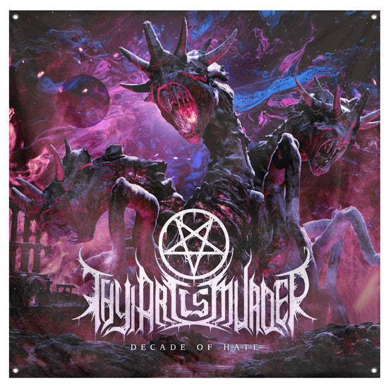 Thy Art Is Murder "Decade Of Hate" Flag. Measures 42"x42" with reinforced grommets. From the Thy Art Is Murder "Decade of Hate" Capsule.